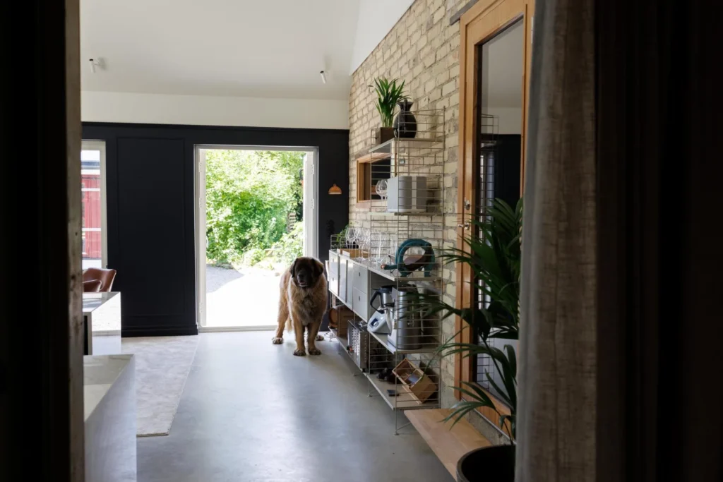 Med genuin lantlig känsla. Här får våra hundar gott om utrymme att springa fritt. Vi odlar våra egna grönsaker, har ett gäng nyfikna höns som sprätter i trädgården och våra katter lever livet.